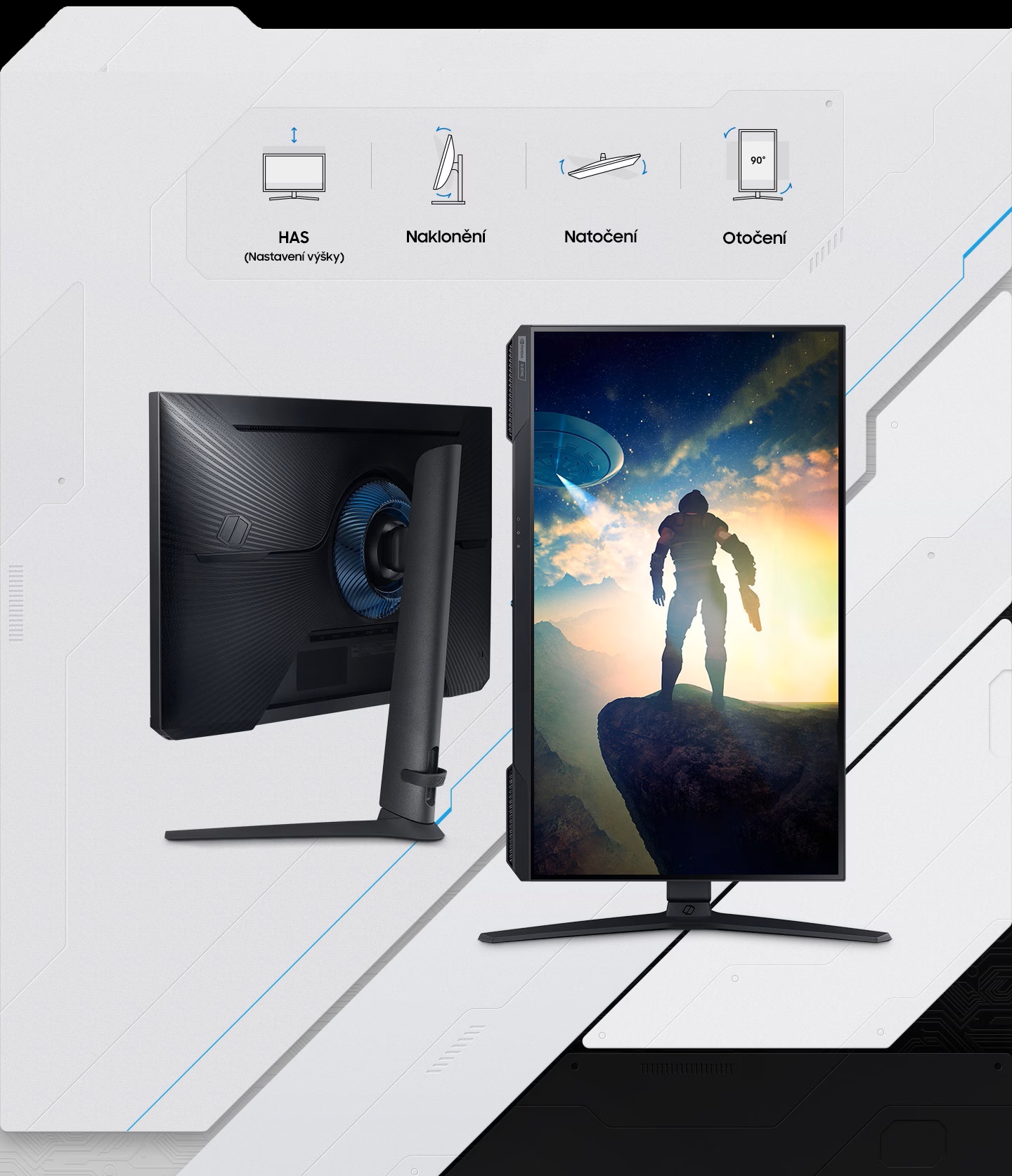 Dosáhněte pořádně vysokého vítězství. Naklánějte, naklápějte a výškově upravte monitor tak, aby se nepřátelé ocitli uprostřed vašeho zorného pole. Monitorem můžete pohybovat do všech směrů a nalézt optimální komfort během hraní všech herních žánrů.