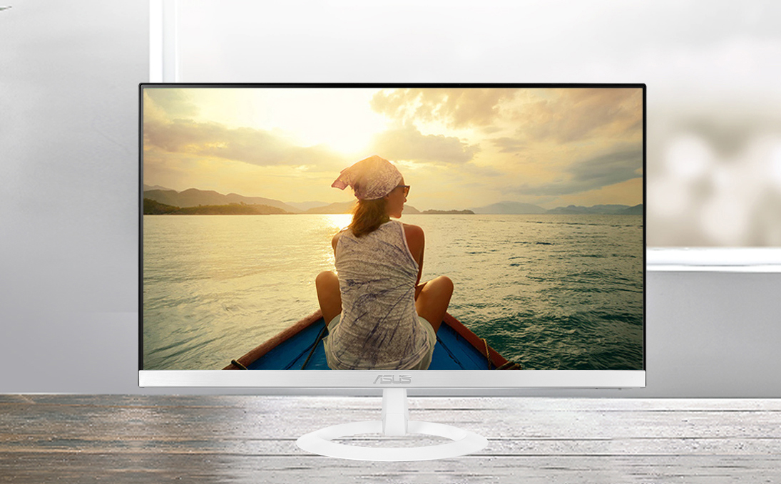 Monitor ASUS VZ279HE-W zaujme kompaktními rozměry a velmi malou tloušťkou pouhých 7 mm v nejtenčím místě. Díky bezrámovému provedení je perfektním řešením pro konfigurace s více monitory – napojení jednotlivých obrazovek bude téměř neznatelné a panoramatický obraz vás doslova pohltí. Monitor využívá pokročilý, vysoce výkonný IPS panel s kontrastním poměrem 80 000 000 : 1 a širokými pozorovacími úhly 178 stupňů. Nechybí ani technologie ASUS Eye Care, která se postará o ochranu zraku a pohodlí při sledování obsahu na monitoru.