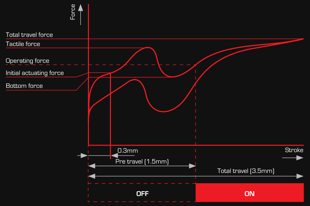 Spínače PRES umožňují využít celý váš potenciál, nabízejí rychlý vstup a okamžité rychlé úhozy s minimálním množstvím překlepů a chyb - poskytují vám vynikající rovnováhu rychlosti a kontroly.