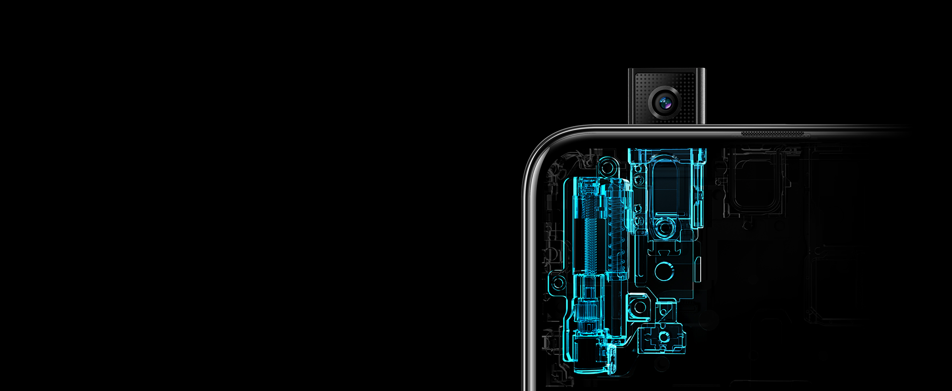 Zaměnili jsme výřez v displeji za vysouvací selfie kameru. Když budete chtít zachytit selfie snímek, kamera se vysune v průběhu sekundy a po dokončení se automaticky stáhne.