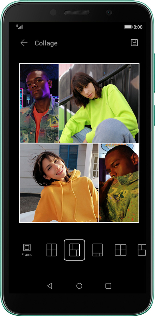 Funkce koláže spojí 2 - 9 obrázků do jednoho snímku bez použití aplikace třetích stran. Ve spolupráci s inteligentním algoritmem lze obrázky nastavit do optimální polohy mřížky podle jejich velikosti. Ukažte svým přátelům úžasnou scenérii a okouzlující selfies na jednom obrázku bez námahy.