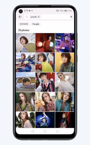 Vyhledej oblíbenou fotografii ve své rozsáhlé fotogalerii za několik sekund. HUAWEI P40 lite E dokáže automaticky rozpoznat 280 označení i bez připojení k síti. Stačí otevřít galerii, zadat heslo, například „lidé“, a pak už můžeš procházet všechny obrázky s požadovaným obsahem.