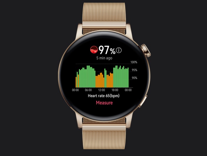 Saturace krve kyslíkem (SpO2) je jednou z důležitých životních funkcí, které mohou odrážet přísun kyslíku do těla. HUAWEI WATCH GT 3 automaticky poskytuje 24hodinovou detekci úrovně SpO2 bez ohledu na to, zda pracuješ, cvičíš nebo spíš, což pečlivě chrání tvé zdraví po celý den.