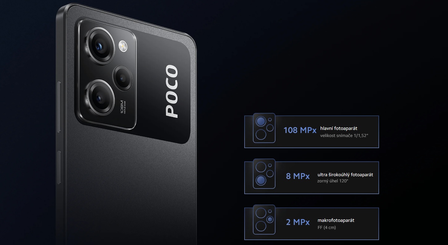 Hlavní fotoaparát s rozlišením 108 MPx kombinuje mimořádně velký snímač s výkonem technologie sdružování pixelů 9 v 1 pro úžasné rozlišení, a to dokonce i ve tmě. Díky výkonné výpočetní kapacitě se výrazně zlepšila rychlost závěrky i rychlost zobrazování.