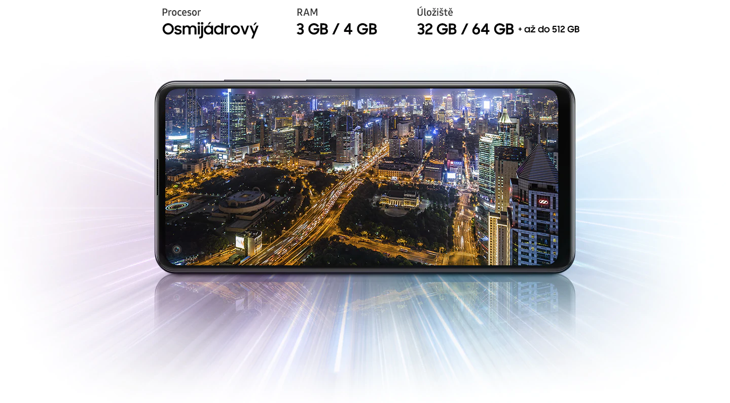 Galaxy A21s má rychlé zpracování dat a prostorné úložiště, takže se můžete soustředit na daný okamžik. Pokročilý osmijádrový procesor a až 4GB RAM poskytují plynulý a efektivní výkon. Stahujte více a mažte méně dat s až 128GB interním úložištěm. Přidejte ještě více s 512GB microSD kartou.