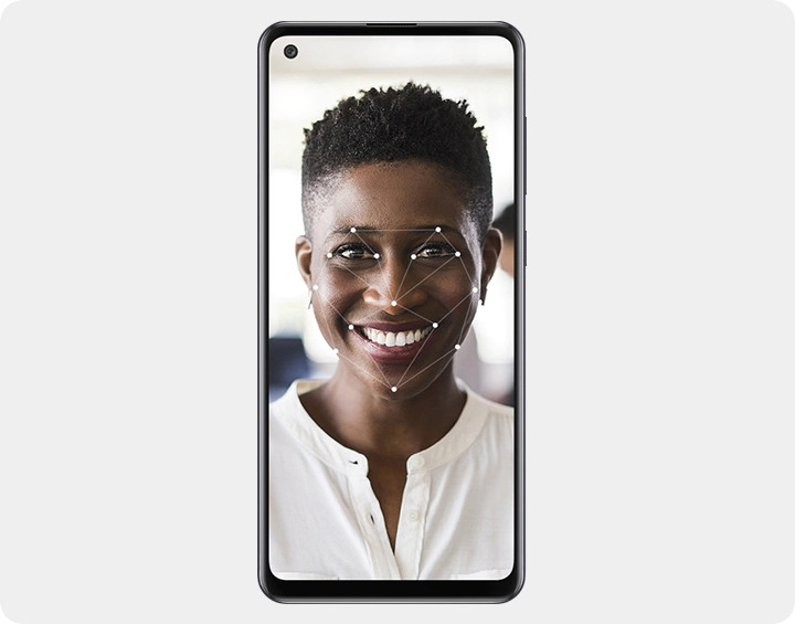 Odemykejte váš telefon jednoduše a udržte svá data v bezpečí s technologií Rozpoznání obličeje Galaxy A21s. Ta vám umožňuje odemknout telefon jediným pohledem, a chránit tak vaše osobní data.