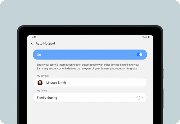 Galaxy Tab A7 se synchronizuje s vaším smartphonem Galaxy, takže vám už neuniknout žádné příchozí zprávy či hovory – o nic nepřijdete. Pokud jste mimo Wi-Fi, funkce Auto Hotspot se o vás postará. Připojte bezpečně svůj smartphone a tablet Galaxy, abyste mohli snadno sdílet data.