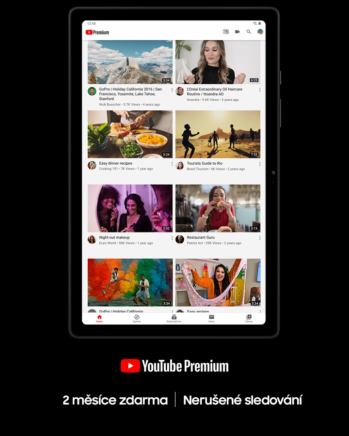 YouTube Premium a Galaxy Tab se spojují, abyste mohli nerušeně sledovat svůj oblíbený obsah na YouTube. Vychutnejte si přehrávání na YouTube a YouTube Music bez reklam a offline. První 2 měsíce získáte při nákupu Galaxy Tab A7 zdarma.