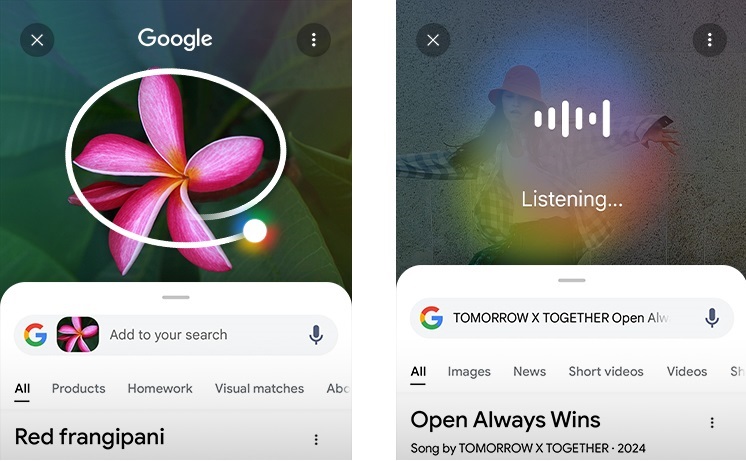 Vyhledávání zakroužkováním s Google ti umožní vyhledat cokoli na obrazovce a získat informace rychleji díky AI Přehledům. Stačí prstem zakroužkovat objekt, například fotky, videa nebo text, a okamžitě získáš výsledky. Dokonce můžeš vyhledat písničku, která právě hraje, a to bez nutnosti přepínat aplikace.