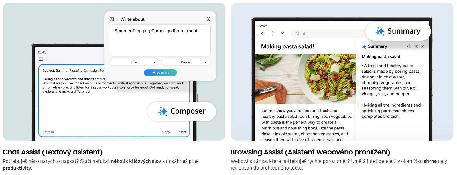 Získej zápisky z přednášek několika klepnutími – i když děláš více úkolů najednou. Funkce Note Assist (Poznámkový asistent) přepisuje nahrávky a organizuje je do přehledného textu, čímž vytváří efektivní shrnutí. Na vše ostatní je tu pero S Pen, které je připravené dělat malé zázraky na velké obrazovce.