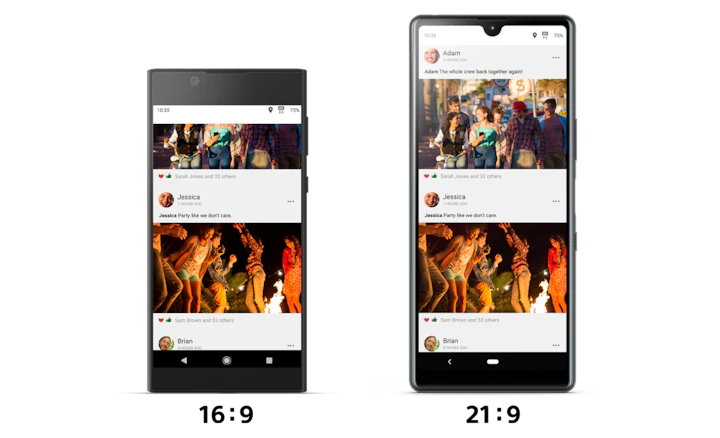 6,2" širokoúhlý displej 21:9 nabízí větší plochu, na které můžete procházet web, číst, používat mapu, sledovat video, psát zprávy atd.