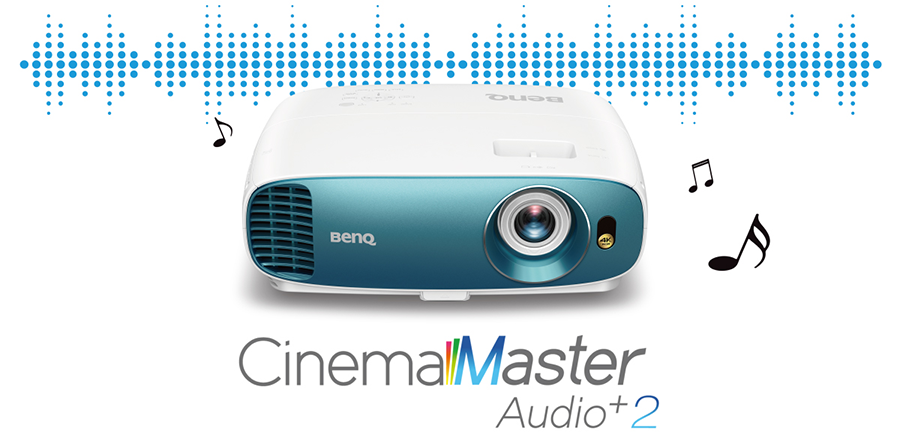 Technologie vylepšení zvuku BenQ CinemaMaster Audio+ 2 zdokonalená o výrazně širší frekvenční pásmo výkonného 5W reproduktoru s rezonanční zvukovou komorou pro hluboké basy a jemné výšky, rovněž poskytuje exkluzivní algoritmy EQ pro ryzí čistotu a senzuální kvalitu zvuku, jako v Hollywoodských studiích.