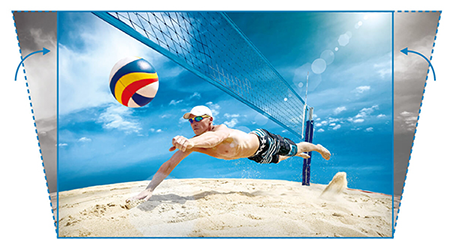 Režim obrazu Sporty vykresluje realistické odstíny pleti, teplé tóny dřeva i intenzivní červenou s vyváženou zelenou a modrou a vytváří na velké projekční ploše fantastickou projekci sportovních akcí probíhajících v rychlém tempu na palubovce. A režim zvuku Sporty zdůrazňuje komentáře komentátora a čisté akustické detaily skřípajících tenisek, pískajících rozhodčích a povzbuzujícího davu v zastřešené aréně.