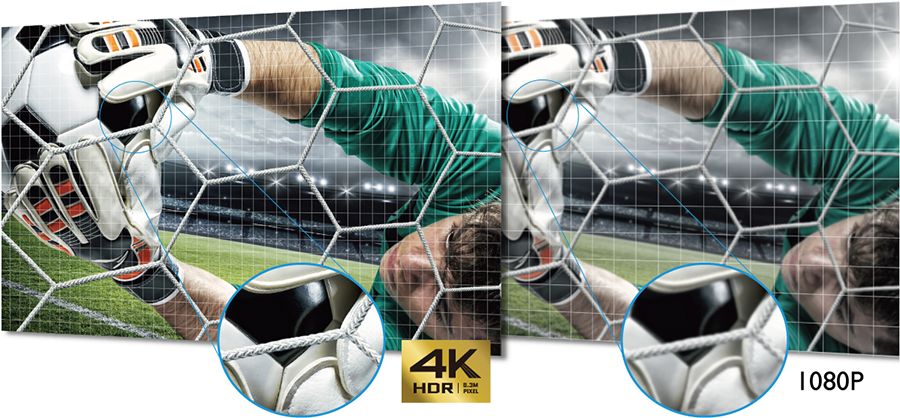 TK800 s rozlišením 4K UHD 3 840 x 2 160, 8,3 milióny různých pixelů pro každý snímek a technologií XPR, využívá revoluční technologii DLP s jediným 0,47" DMD čipem pro minimalizaci elegantního a kompaktního profilu odpovídajícího požadavkům na moderní životní styl. Zásluhou čtyřnásobného rozlišení oproti Full HD 1080p snižuje rozlišení 4K UHD rozmazání pixelů a zaručuje fantastickou čistotu a ostré rozlišení jemných detailů.