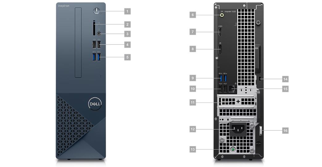 Větší neznamená vždy lepší. Malý stolní počítač Inspiron je dodáván s nejnovějšími procesory Intel® Core™ 13. generace a pamětí až 16 GB DDR4, to vše v kompaktním provedení.