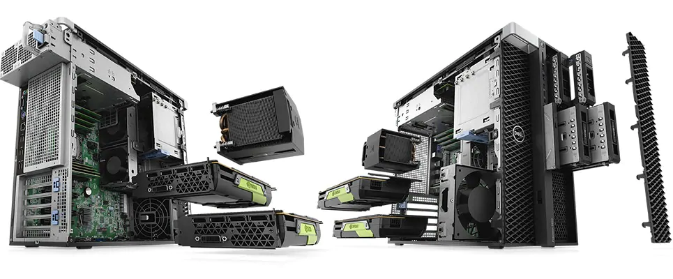 Přizpůsobí se inovacím: Pracovní stanice Precision 5820 Tower je připravena na složité projekty včetně virtuální reality a umělé inteligence díky nové generaci grafických karet AMD Radeon Pro™ a nejvýkonnějším grafickým kartám NVIDIA® Quadro® RTX. Pracovní stanice podporuje až 600 W grafického výkonu a až 300 W na kartu (nutný 950W napájecí zdroj).