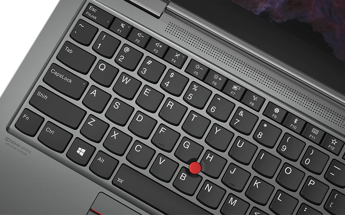 Notebook X1 Yoga Gen 4 disponuje prostorovým zvukem s technologií Dolby Atmos®. Dva výkonné reproduktory podél klávesnice a dva basové reproduktory zespodu zařízení. A výsledek? Vylepšený zvuk, který je všude kolem vás. Navíc čtyři 360° reproduktory redukují okolní hluk při volání a zaznamenají váš hlas přes celou místnost, takže můžete využít hlasové ovládání pro probuzení systému, přehrávání hudby a ještě víc.