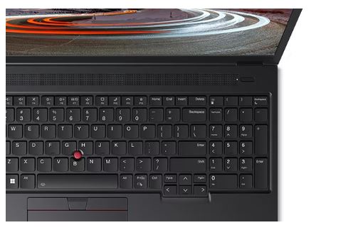 16″ pracovní stanice ThinkPad P16v Gen 2 s podsvícenou klávesnicí plné velikosti, odolnou proti polití, s numerickým blokem, LED diodami na některých klávesách a velkým TrackPadem (115 mm / 4,53″) je navržena pro přístupnost, funkčnost a použitelnost. Přidejte dokovací stanici Thunderbolt™ 4 a rozšiřte využitelný vizuální prostor o jeden nebo dva externí displeje.