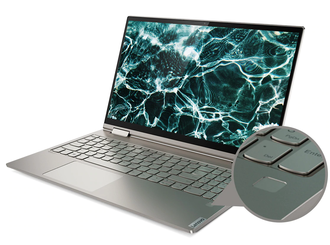 Yoga chrání vaše soukromí. Přihlaste se pomocí čtečky otisku prstu nebo zavřete kryt kamery TrueBlock pro větší soukromí, když kameru nepoužíváte.