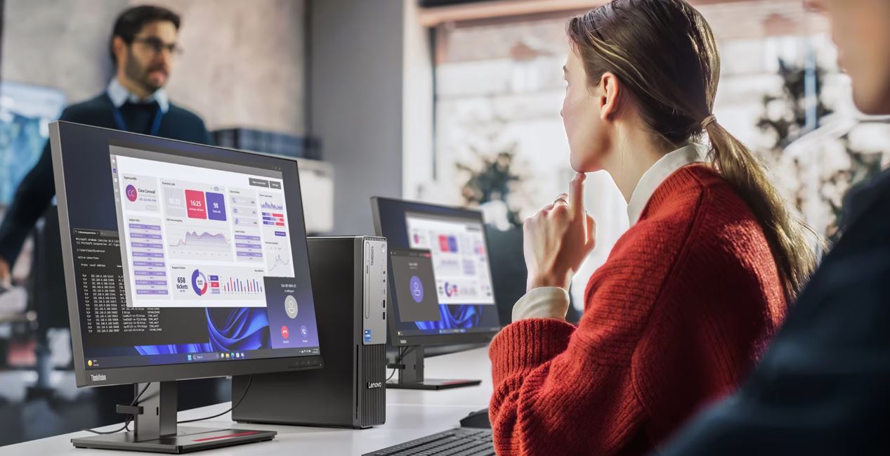 Zvyšte svůj firemní výkon se stolním počítačem Lenovo ThinkCentre Neo 30s Gen 5 SFF, který je poháněn procesory až Intel® Core™ i7. Je ideální pro kompaktní pracovní prostor a poskytuje optimální výkon, díky němuž se náročné úkoly stanou bezproblémovými. Užijte si flexibilní úložiště, dostatek paměti a výkon volitelné grafiky Intel® Arc™ - abyste udrželi krok se svými ambicemi.