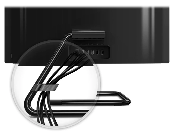 Když k počítači připojíte smartphone, externí disky nebo další zařízení, může vypadat neuspořádaně. Ale ne s A340. Má pohodlný organizátor kabelů vestavěný do stojánku, takže budete mít uklizený pracovní prostor.