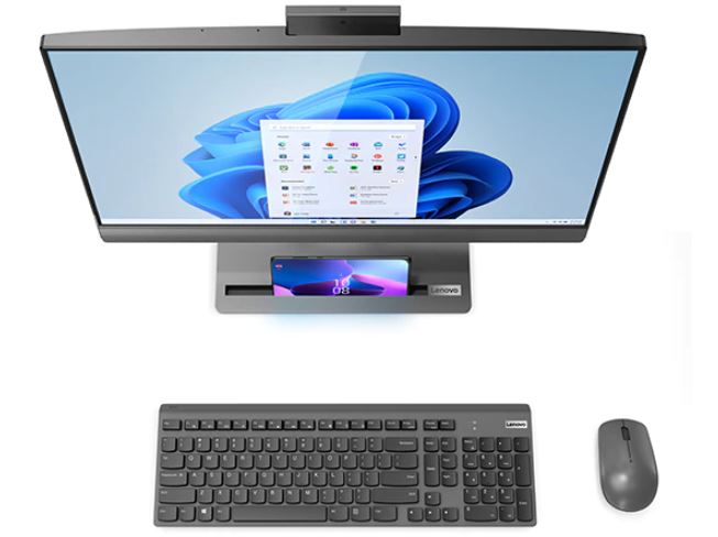Práce s více zařízeními může být složitá. Ale ne s IdeaCentre AIO 5i Gen 7. Položte svůj smartphone na stojan s pohodlnou vestavěnou bezdrátovou nabíječkou Qi. Toto All-in-one zařízení také umožňuje promítat hudbu a obraz z telefonu do reproduktorů a displeje počítače. A pomocí volitelného kabelu Lenovo Smart Cable můžete připojit, ovládat a sdílet úložiště s dalšími zařízeními.